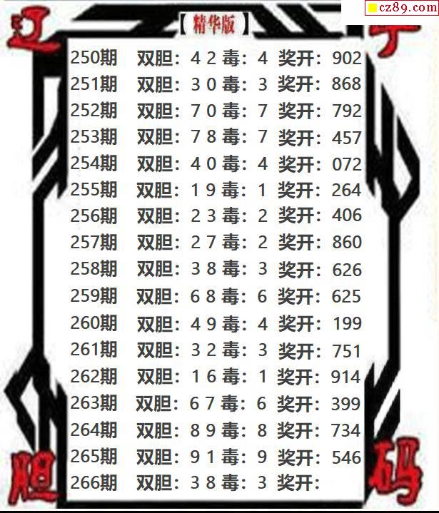辽宁双胆2025266期3d图谜