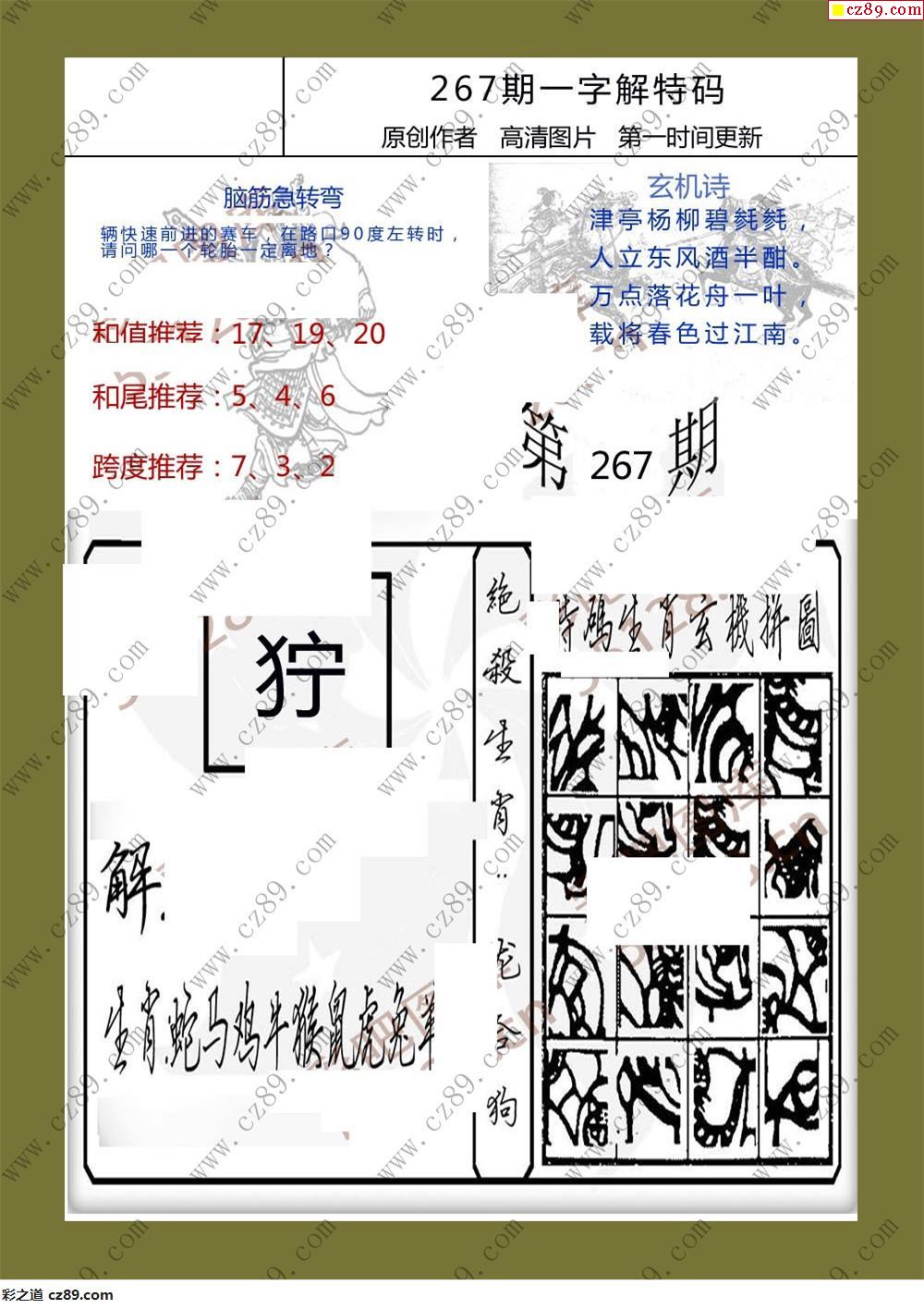 25年267期一字解特码福彩3d彩报