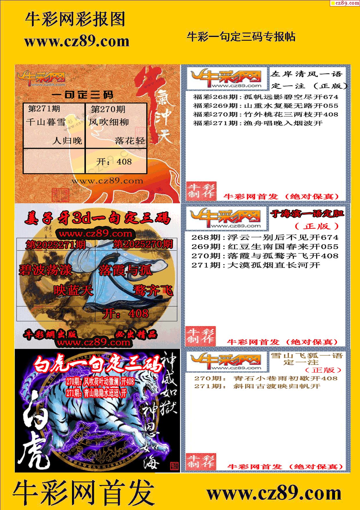 2025271牛彩专家一句定三码彩报