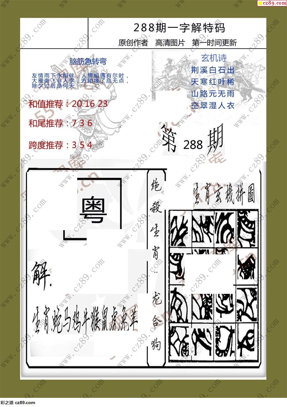 25年288期一字解特码福彩3d彩报