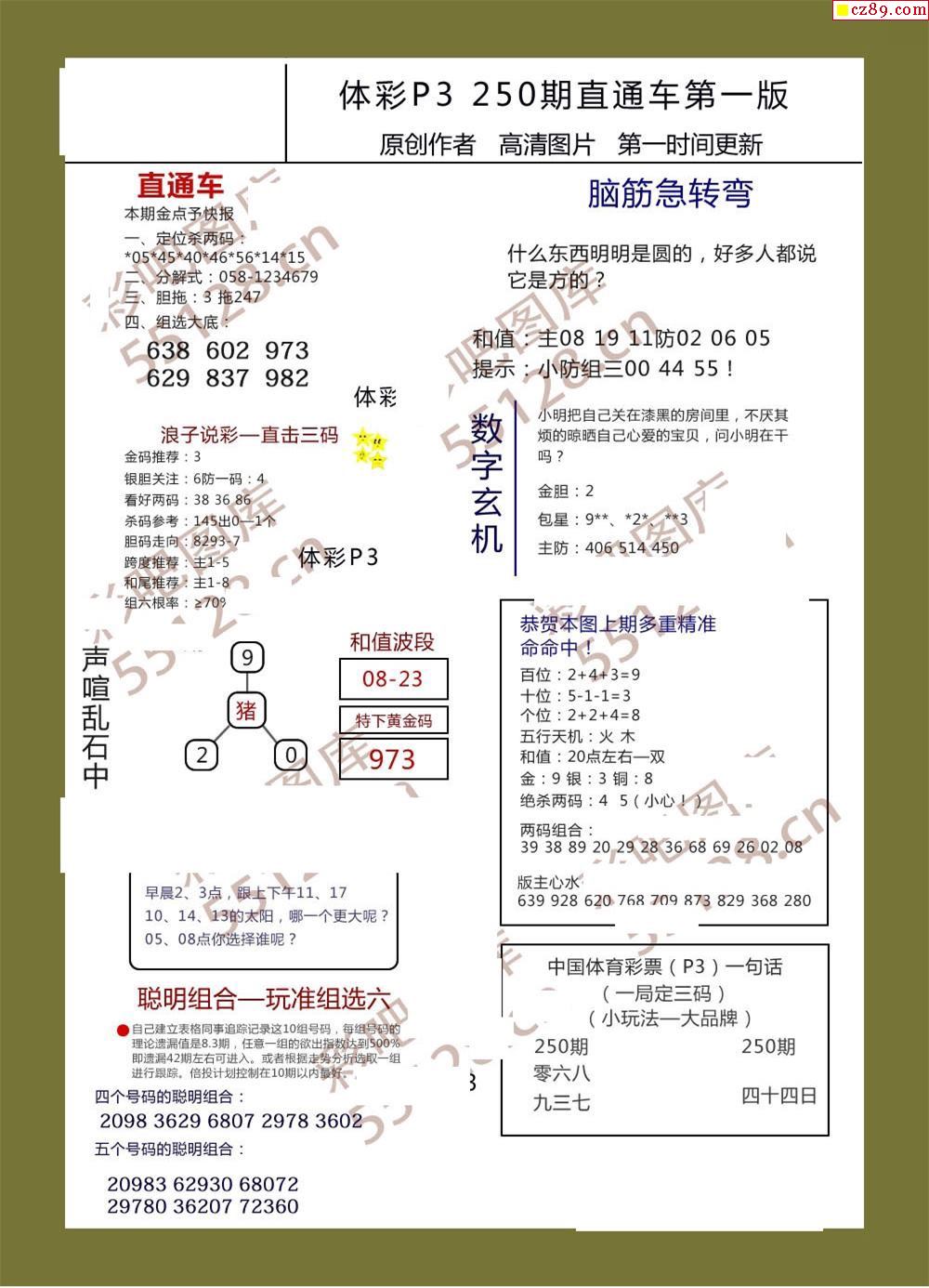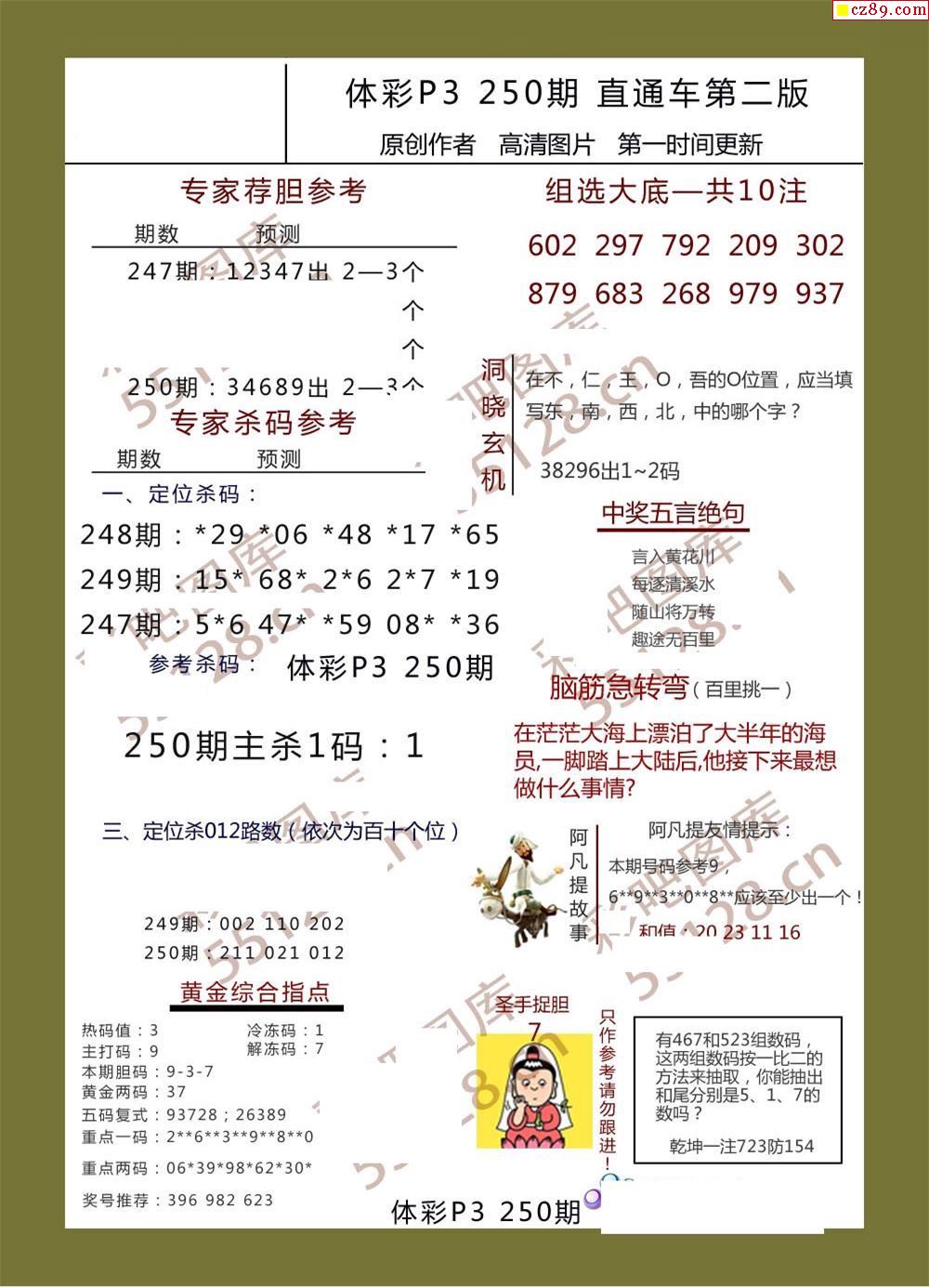 直通车AB版250期体彩p3图谜