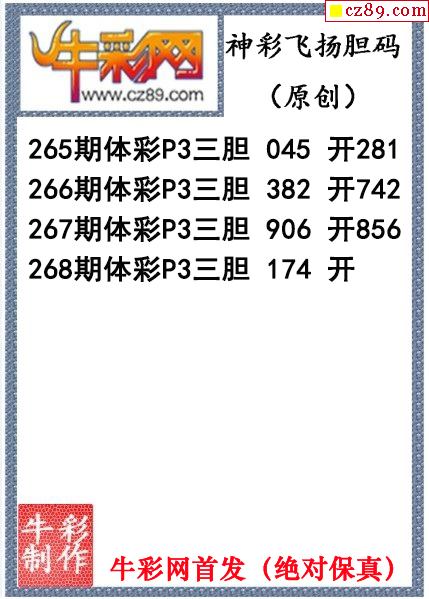 > 神彩飞扬三胆268期体彩P3图谜(原创)