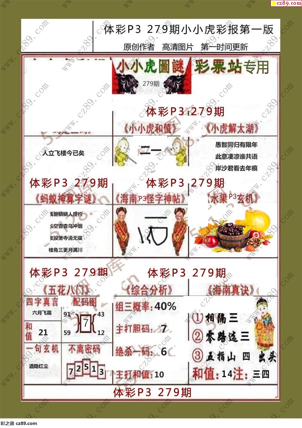 小小虎彩报279期体彩p3图谜