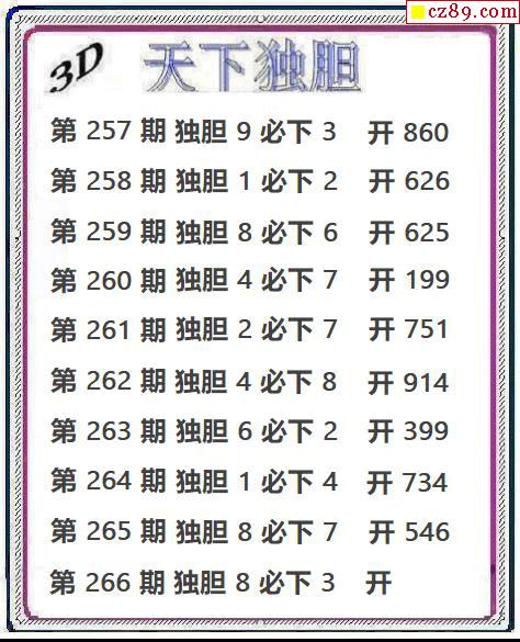 天下独胆2025266期3d图谜